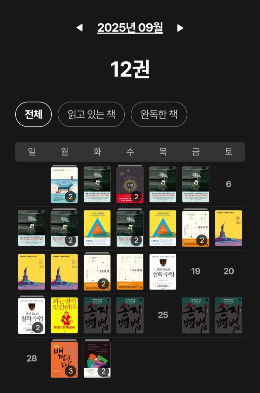 밀리의 서재에 이런 독서 캘린더가 있다는 사실을 이제 알았네요^^; 이렇게 보니 한눈에 볼 수 있어 좋으네요!