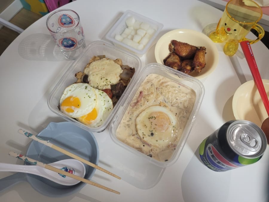 크림 파스타랑 부챗살 스케이크를 냠냠