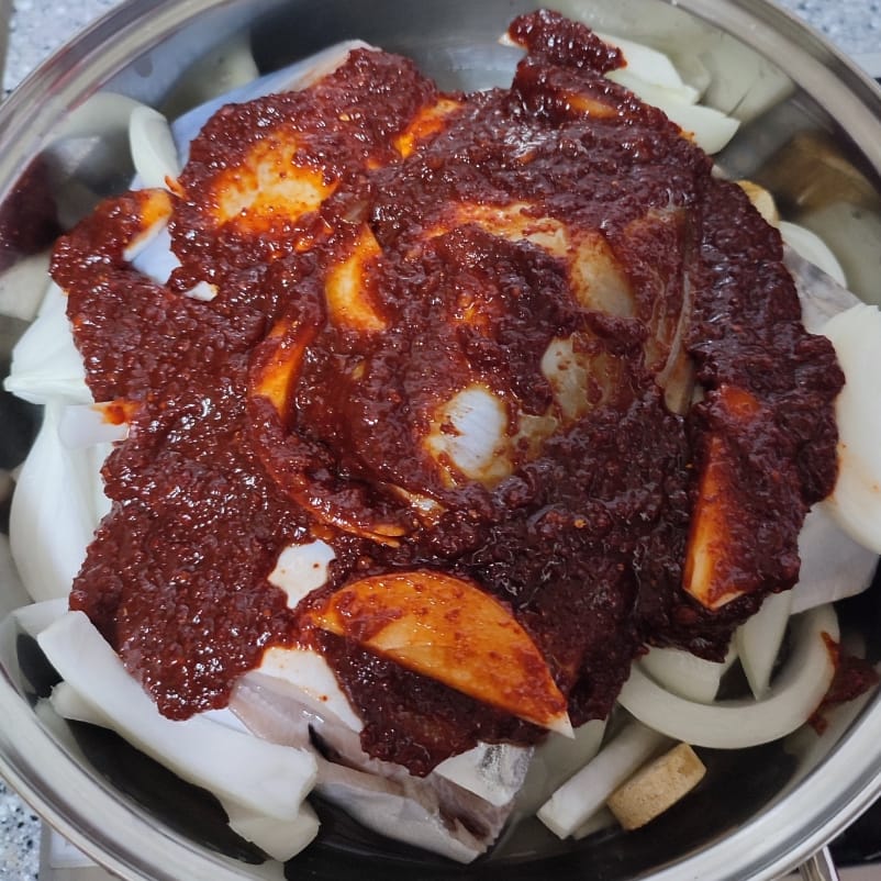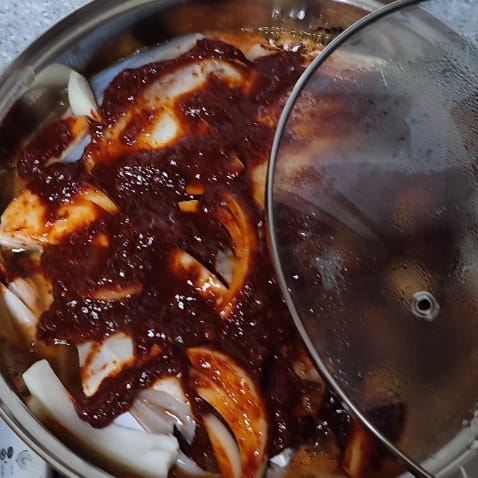 양념장을 골고루 끼얹고 뚜껑을 덮고