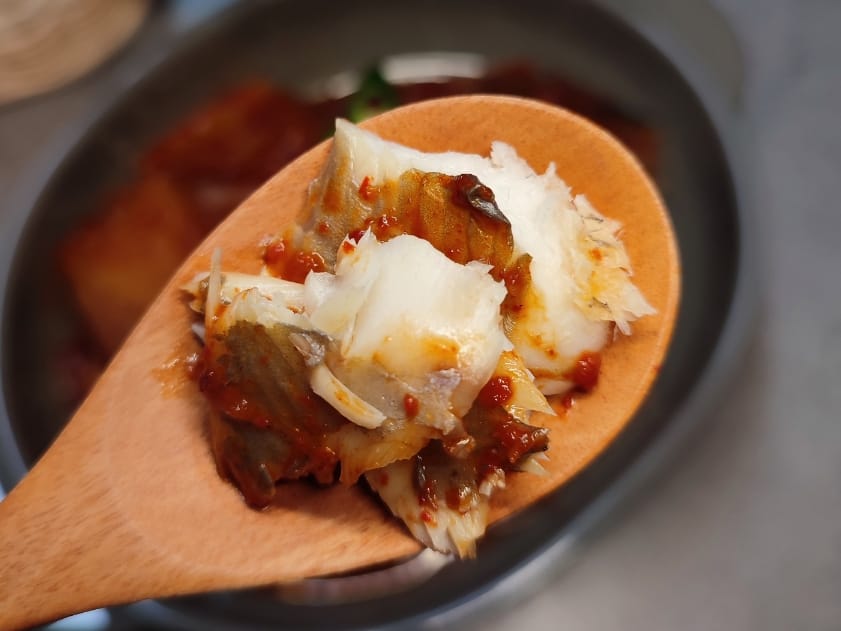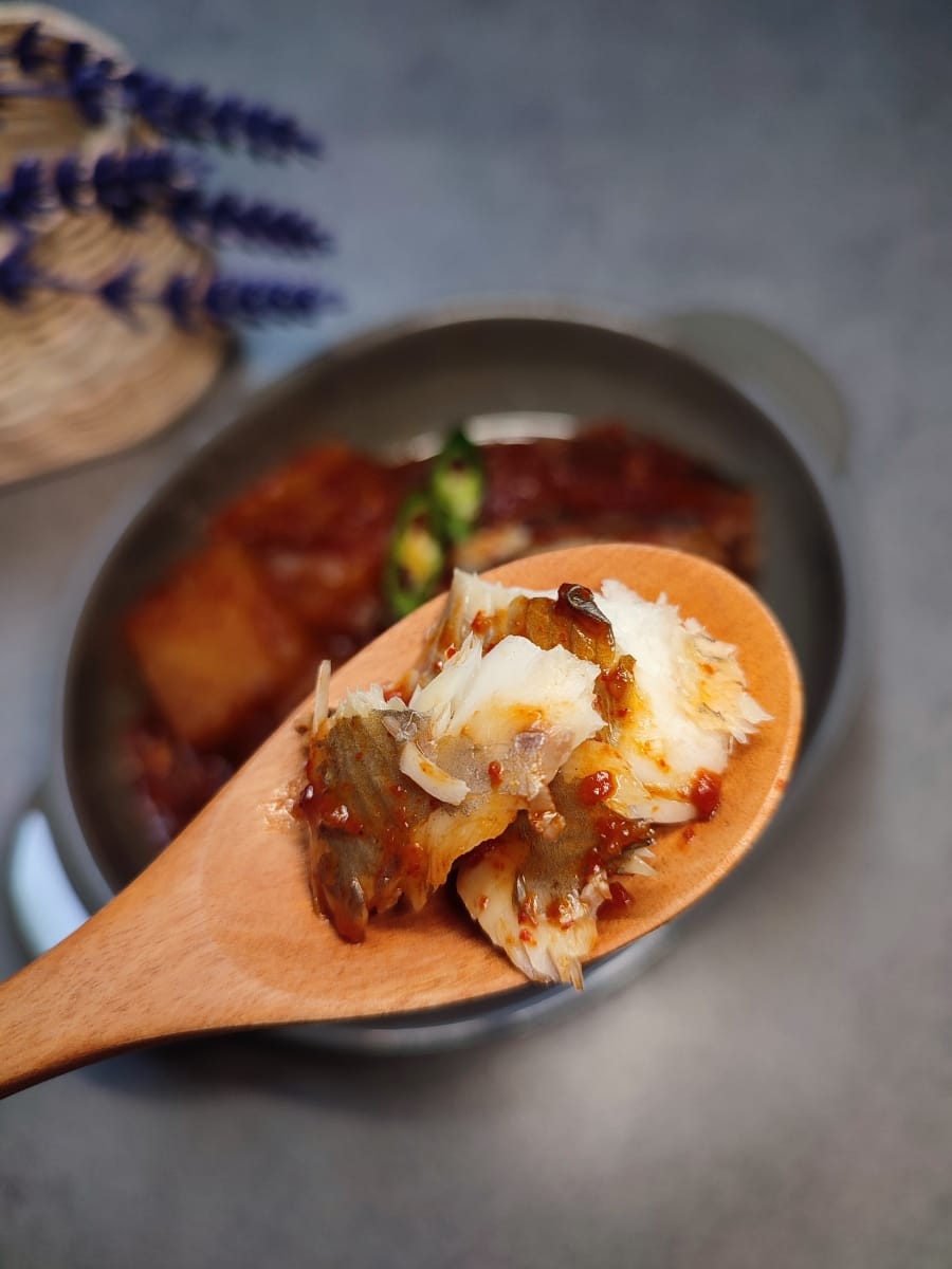 중간에 국물을 숟가락으로 떠서 병어 위에