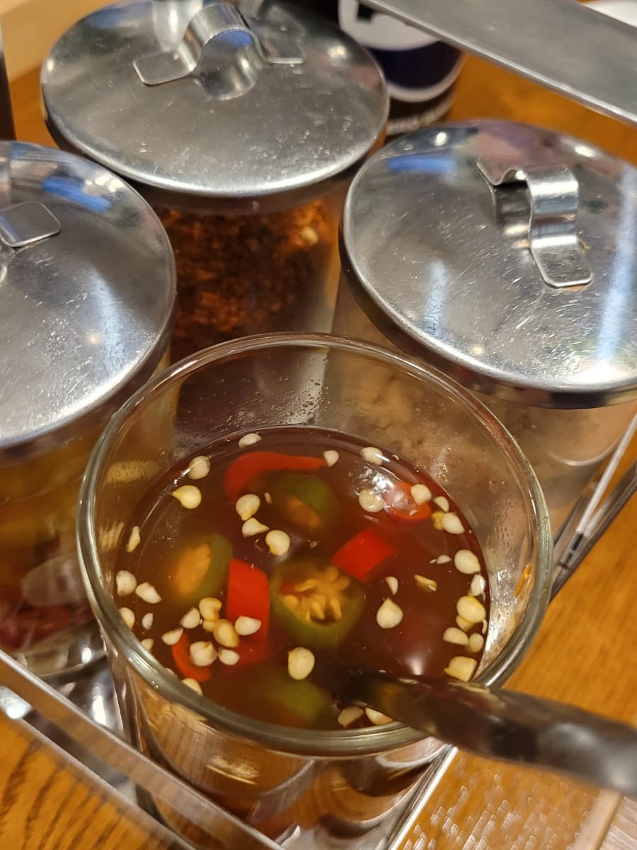왼쪽 피쉬소스, 오른 쪽 사과식초