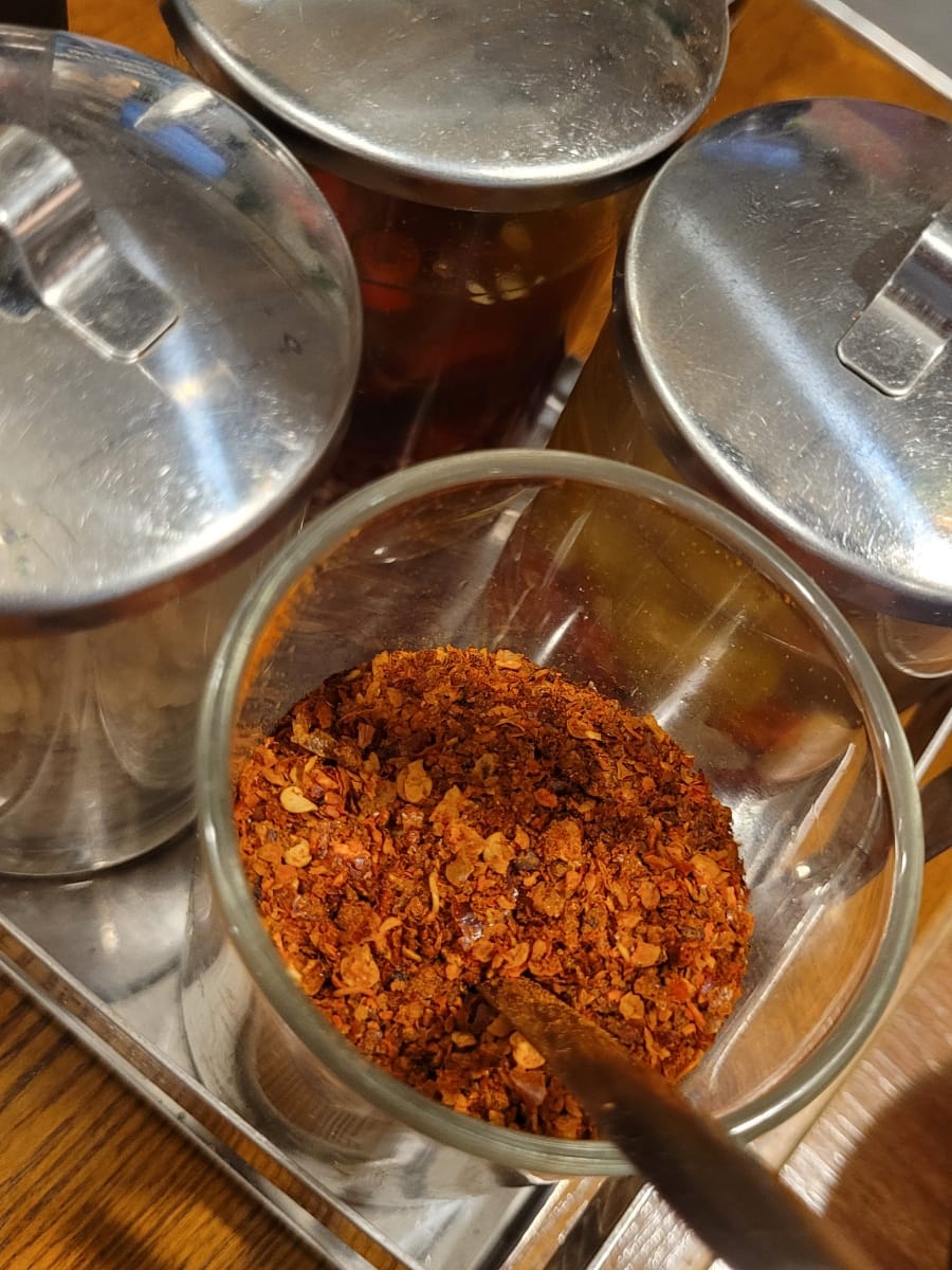 왼쪽 땅콩가루, 오른쪽 고춧가루