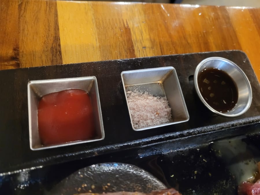 케첩, 핑크 솔트, 스테이크 소스 (?)
