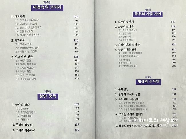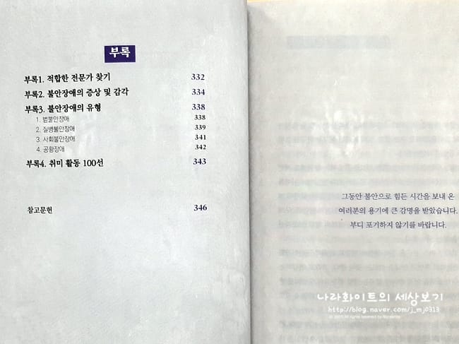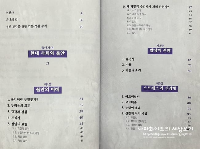 불안 극복에 도움되는 10가지 필수 요소의 치료과정을 알려주고 있다. 불안을 자기 스스로 다루고 치유하는데 필요한 많은 정보가 있었다. 저자는 수 많은 환자를 치료한 임상 경험에서도 검증되었다고 말한다.