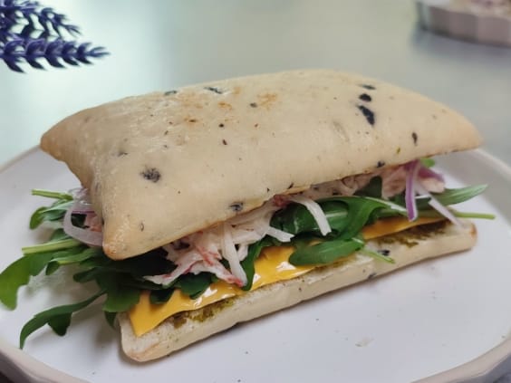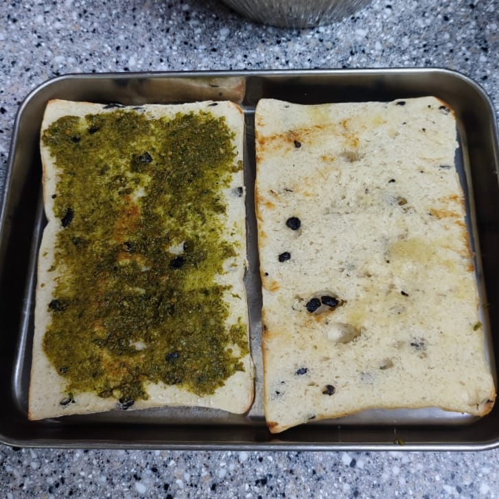 치아바타에 바질페스토가 촉촉하게 스며들어
