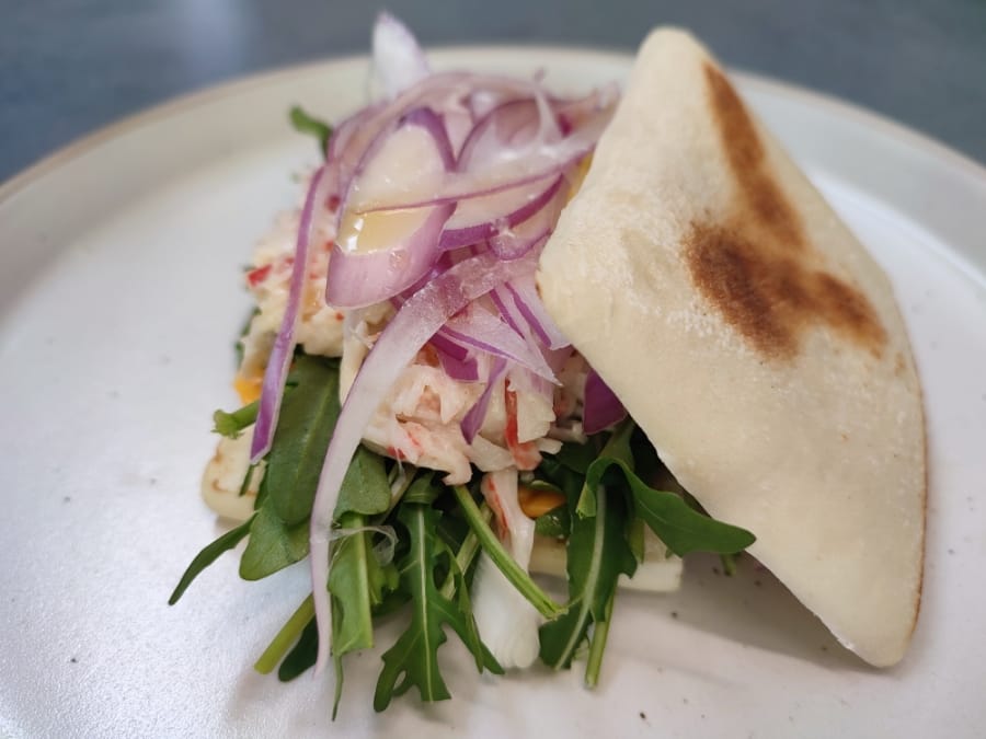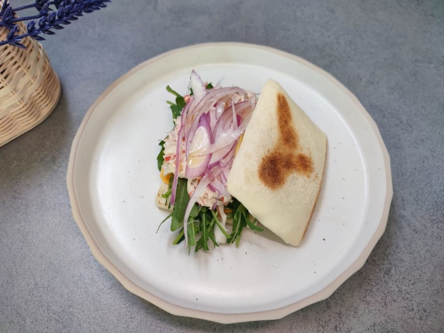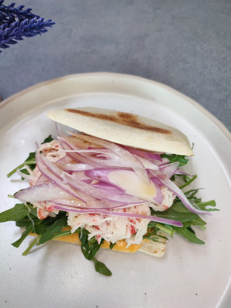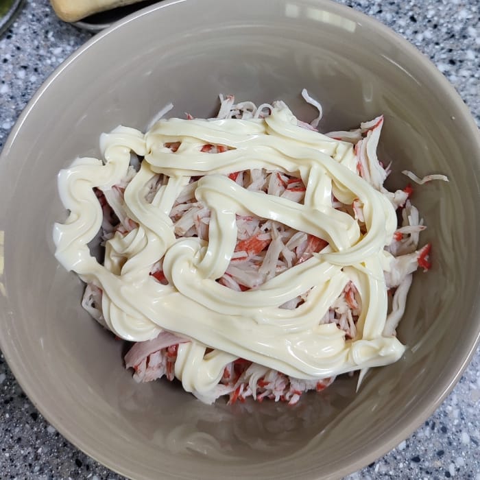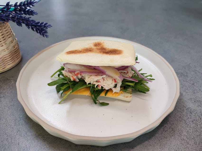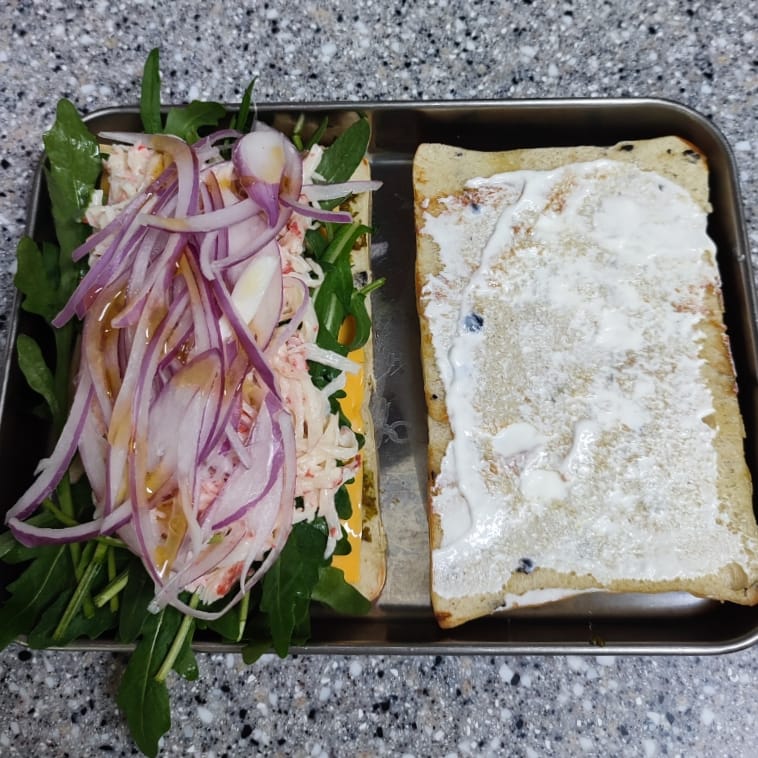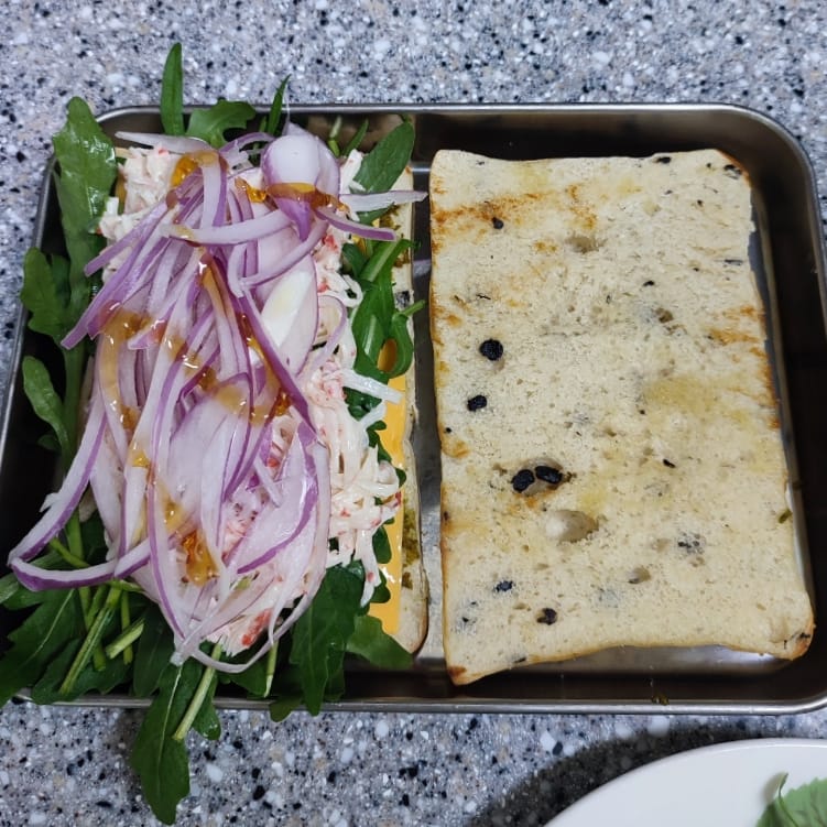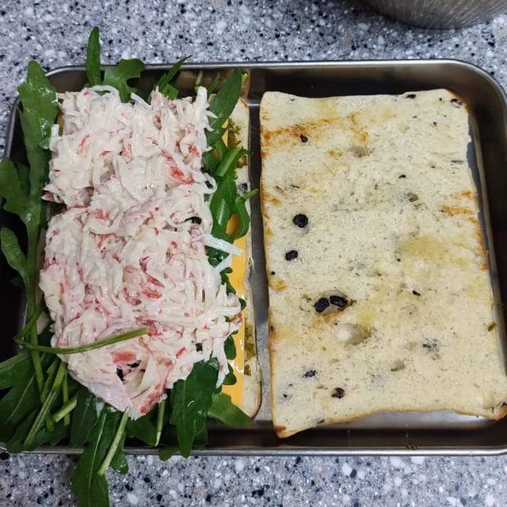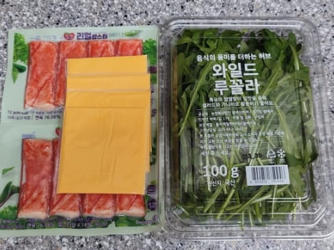 루꼴라와 크래미 마요도 듬뿍 올려요.