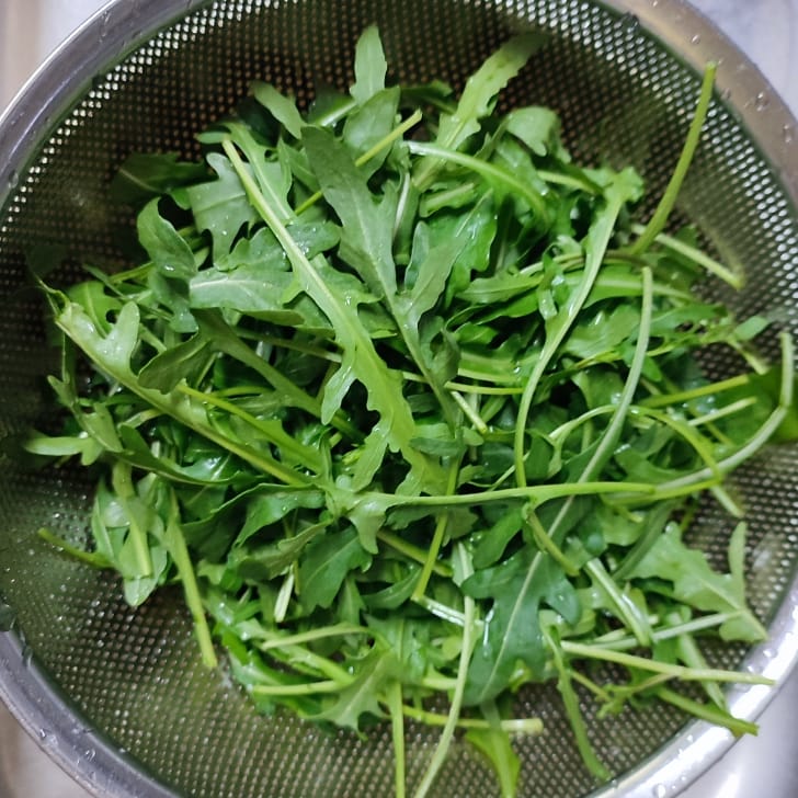 루꼴라는 깨끗이 씻어 물기를 완전히 제거해 줘요.