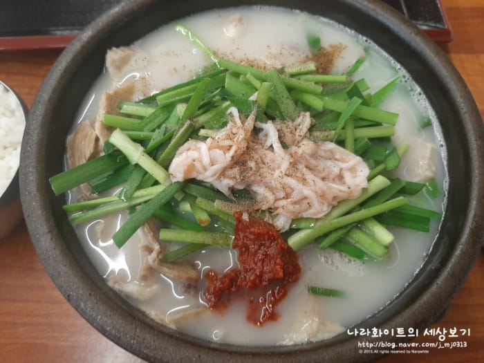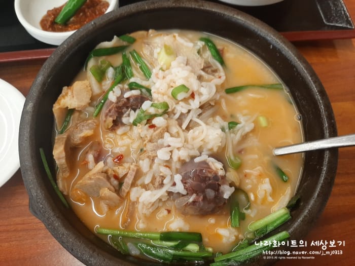 원래 돼지 국밥만 먹었는데 얼마 전부터 순대 국밥 맛을 들여서 그걸 시켰다.