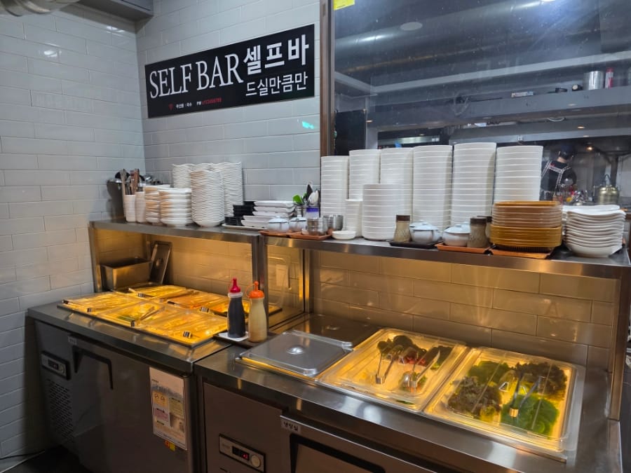 셀프바에는 접시도 넉넉하게 준비되어 있었고,