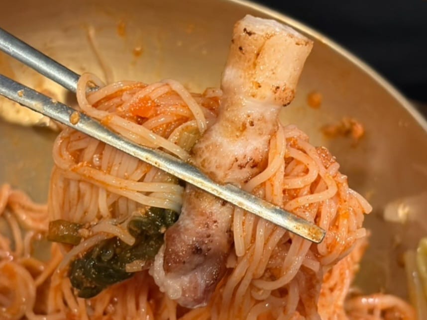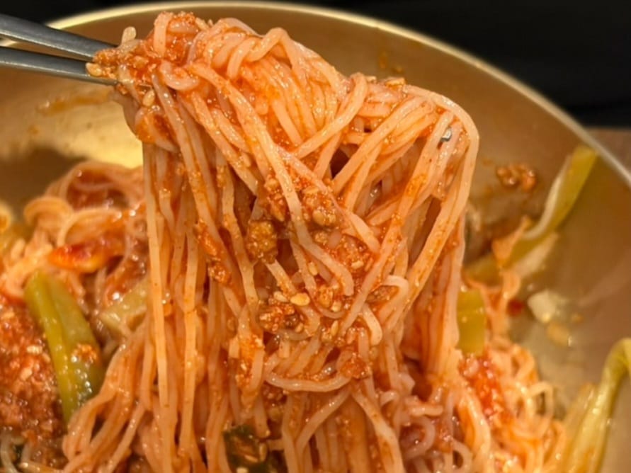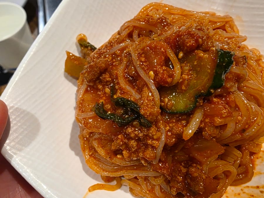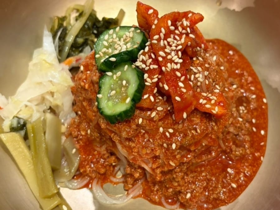 다진 고기와 양념이 면에 착 달라붙은 느낌?!