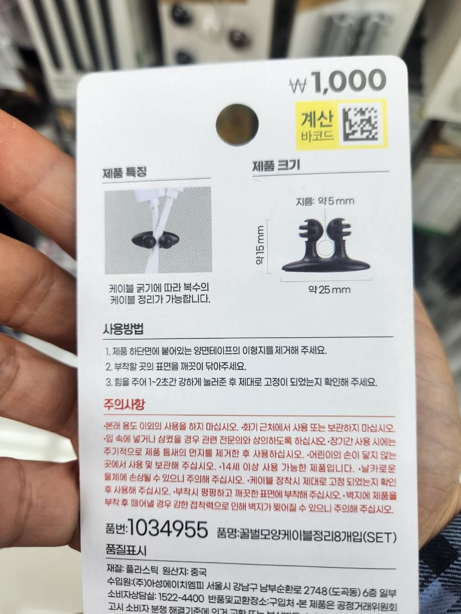 - 부착 위치: 다이소의 스마트폰/IT 액세서리 코너나 사무/정리 용품 코너에서 찾을 수 있습니다.