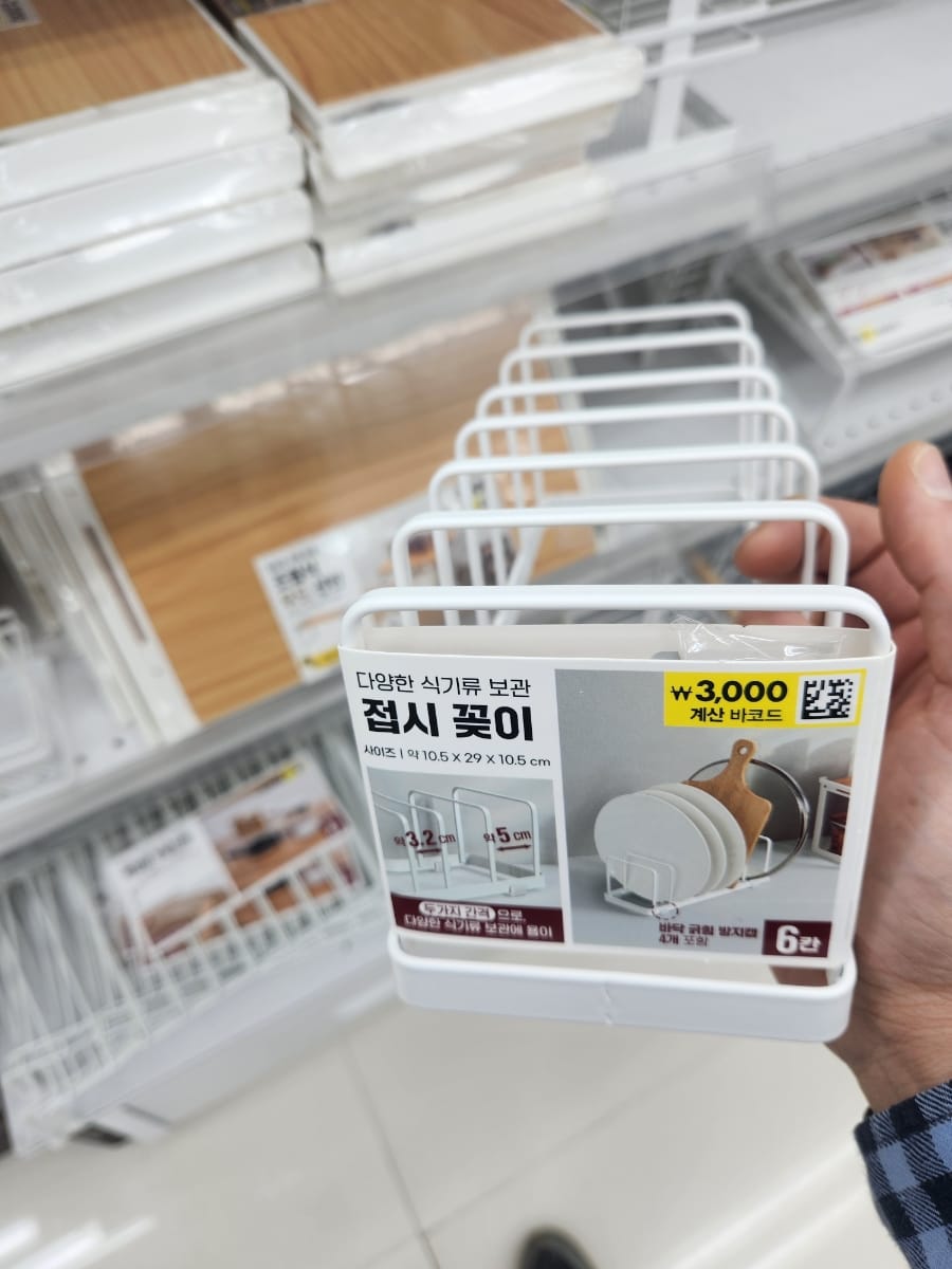다이소의 주방 용품 코너에 가시면 다양한 형태와 사이즈의 접시꽂이를 직접 확인하실 수 있습니다.