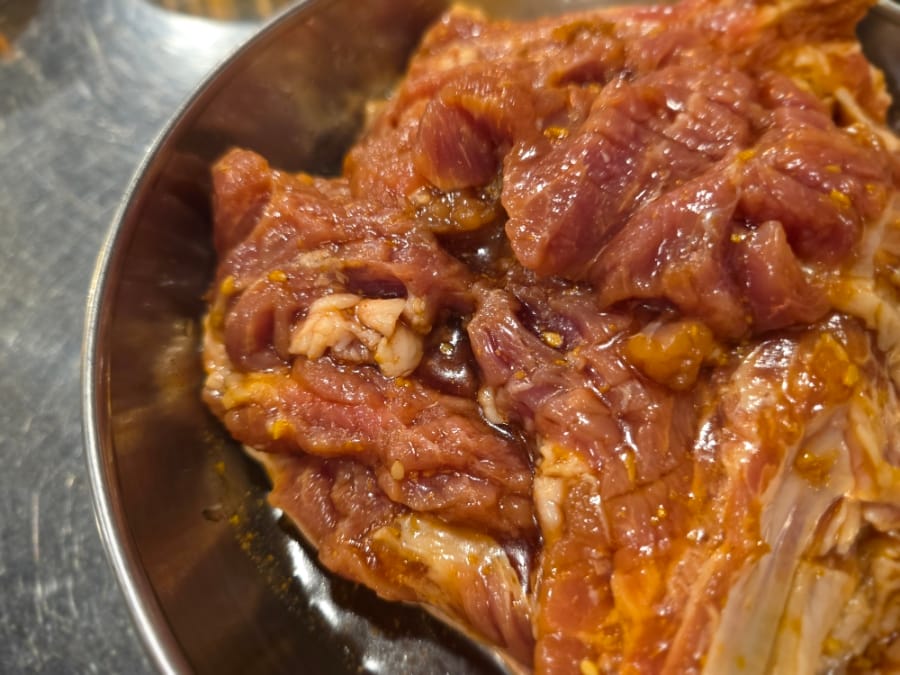고깃결 사이사이로 양념이 잘 배어 있는 게