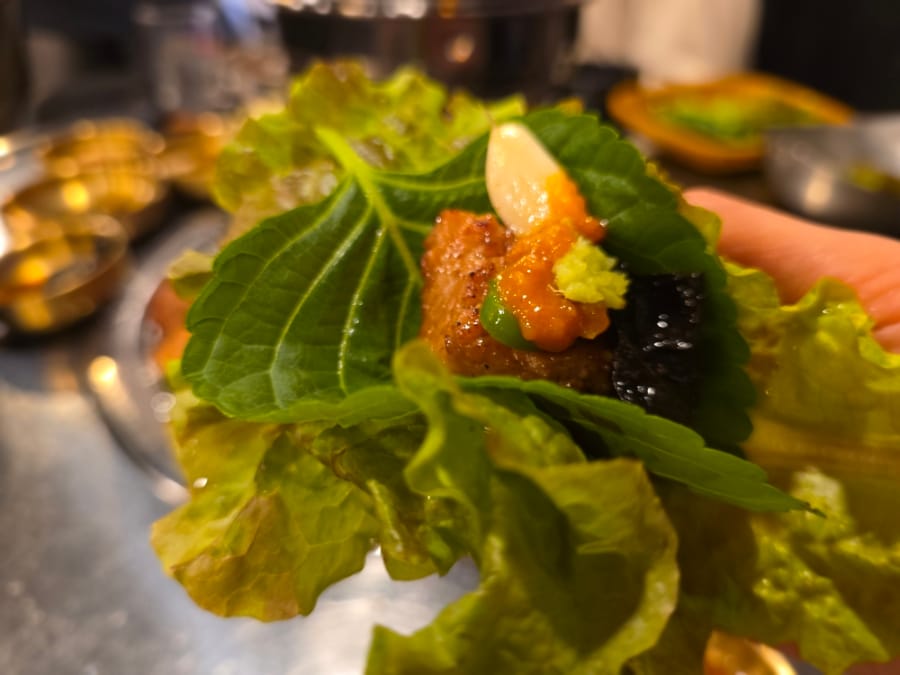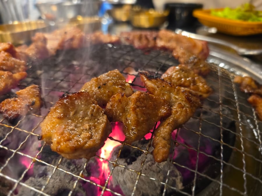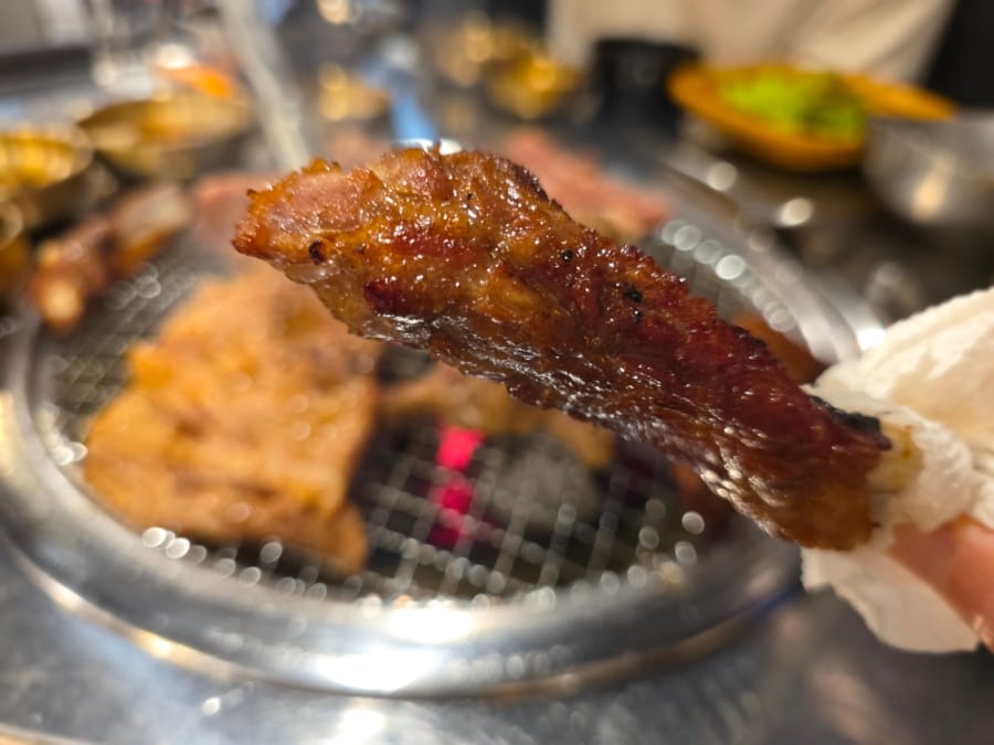 불판에 닿는 순간 달큼한 향이 확 올라왔어요!