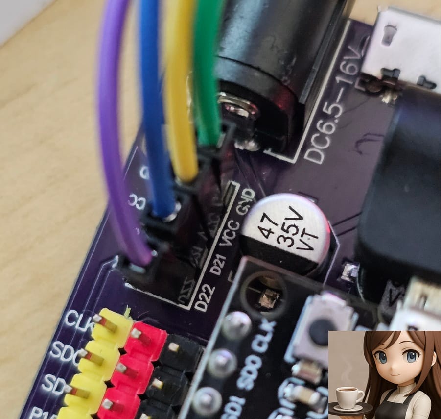D22, D21, VCC, GND 에 연결했구요