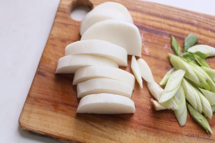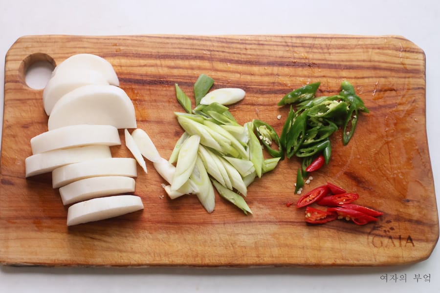 도톰하게 썰면 좋은데 그만큼 익히는데 오래 걸리기 때문에