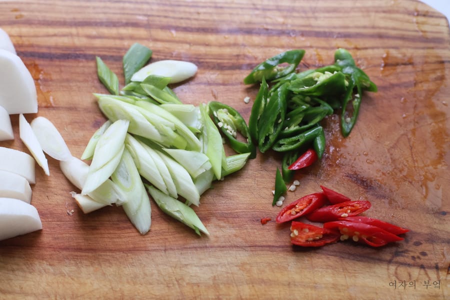 대파와 청양고추 홍고추는 어슷썰어서 준비한다.