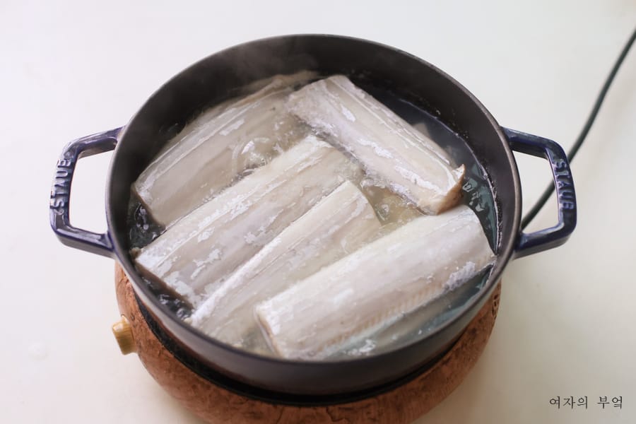 갈치나 다른 재료는 금방 익으니까 무만 오래 익힌다.