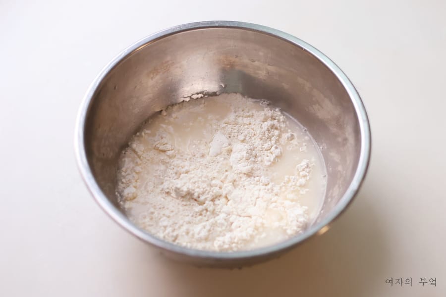 날가루가 보이지 않을 정도로 섞어서 반죽한다.