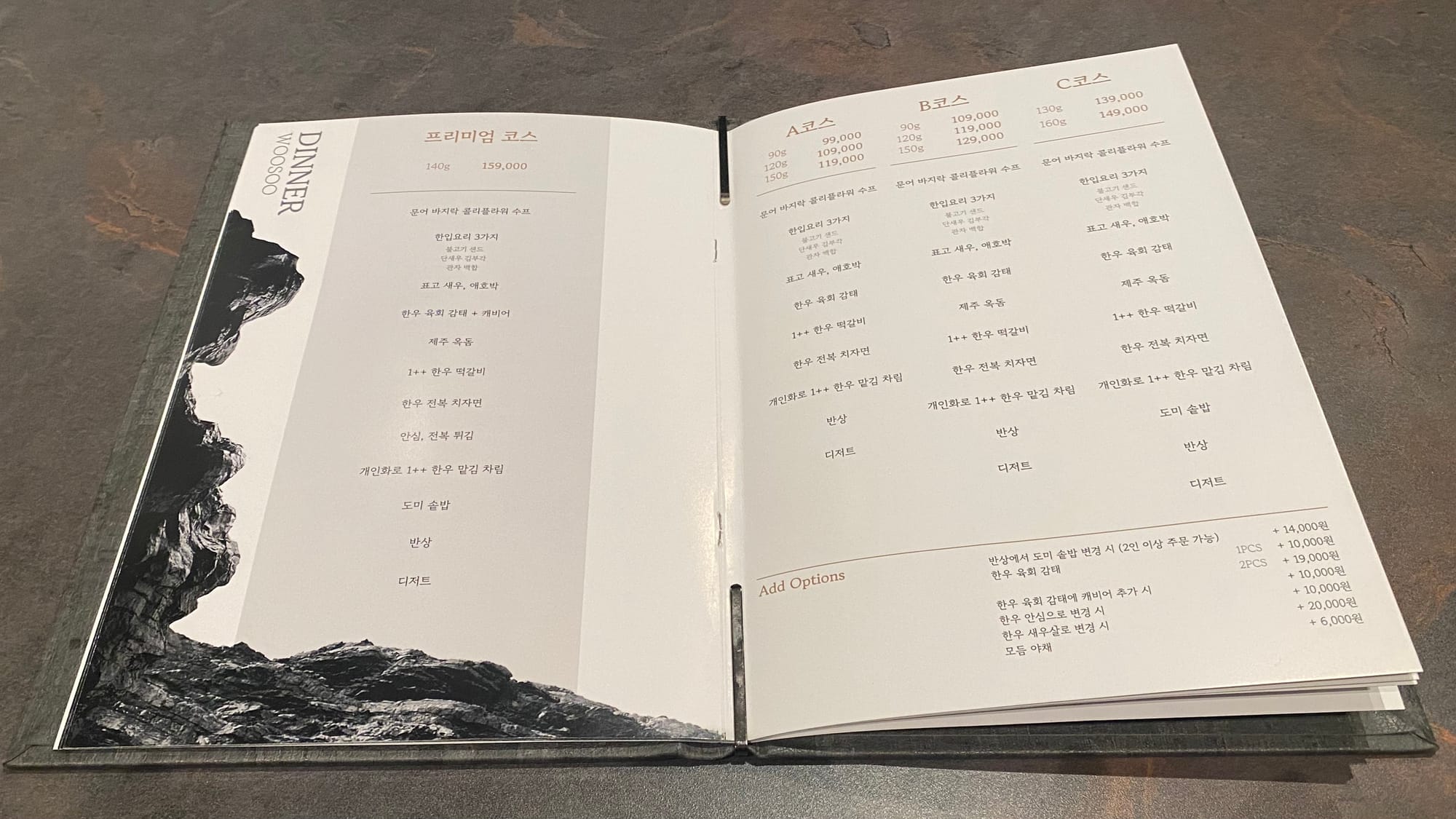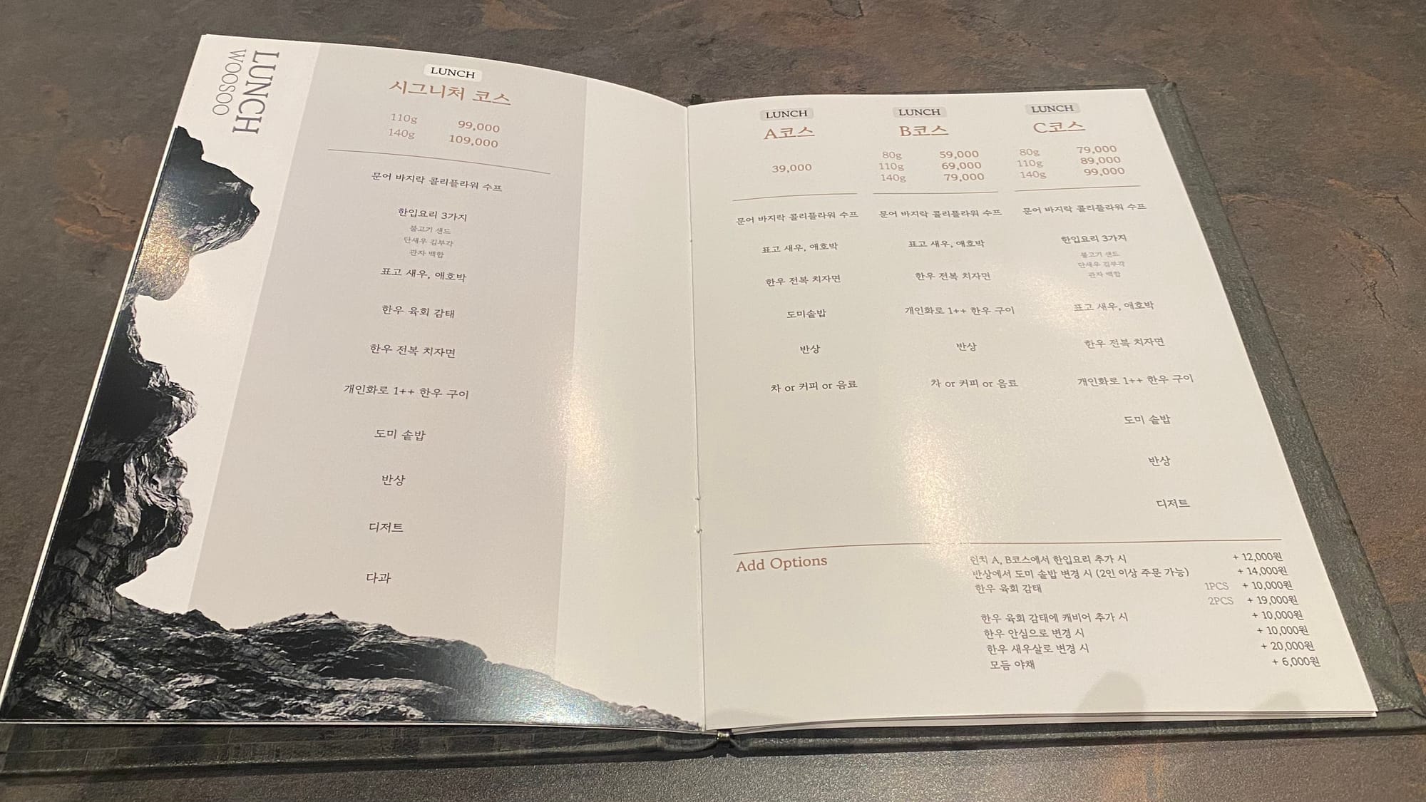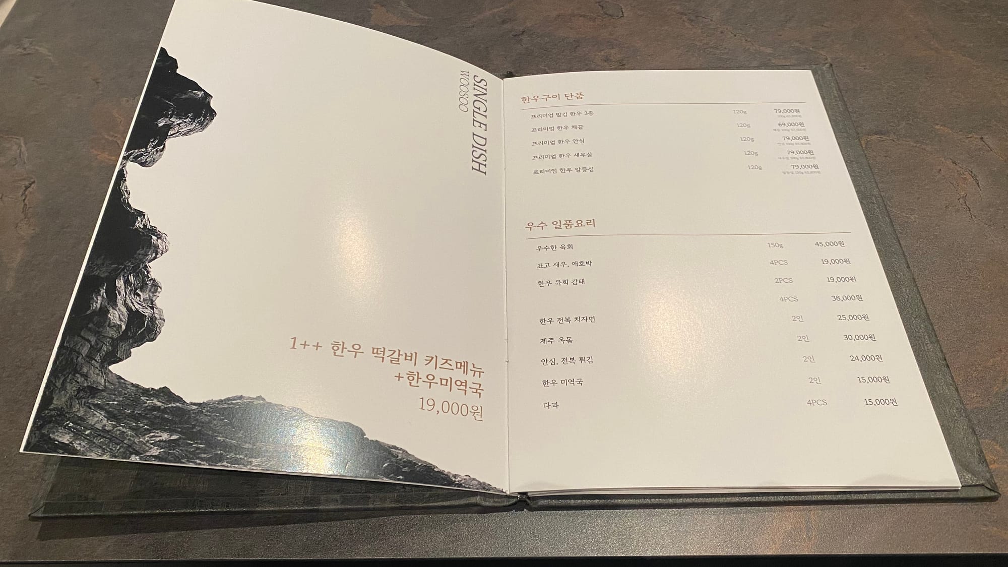 우수의 메뉴는 코스요리로 구성되어 있구요 !