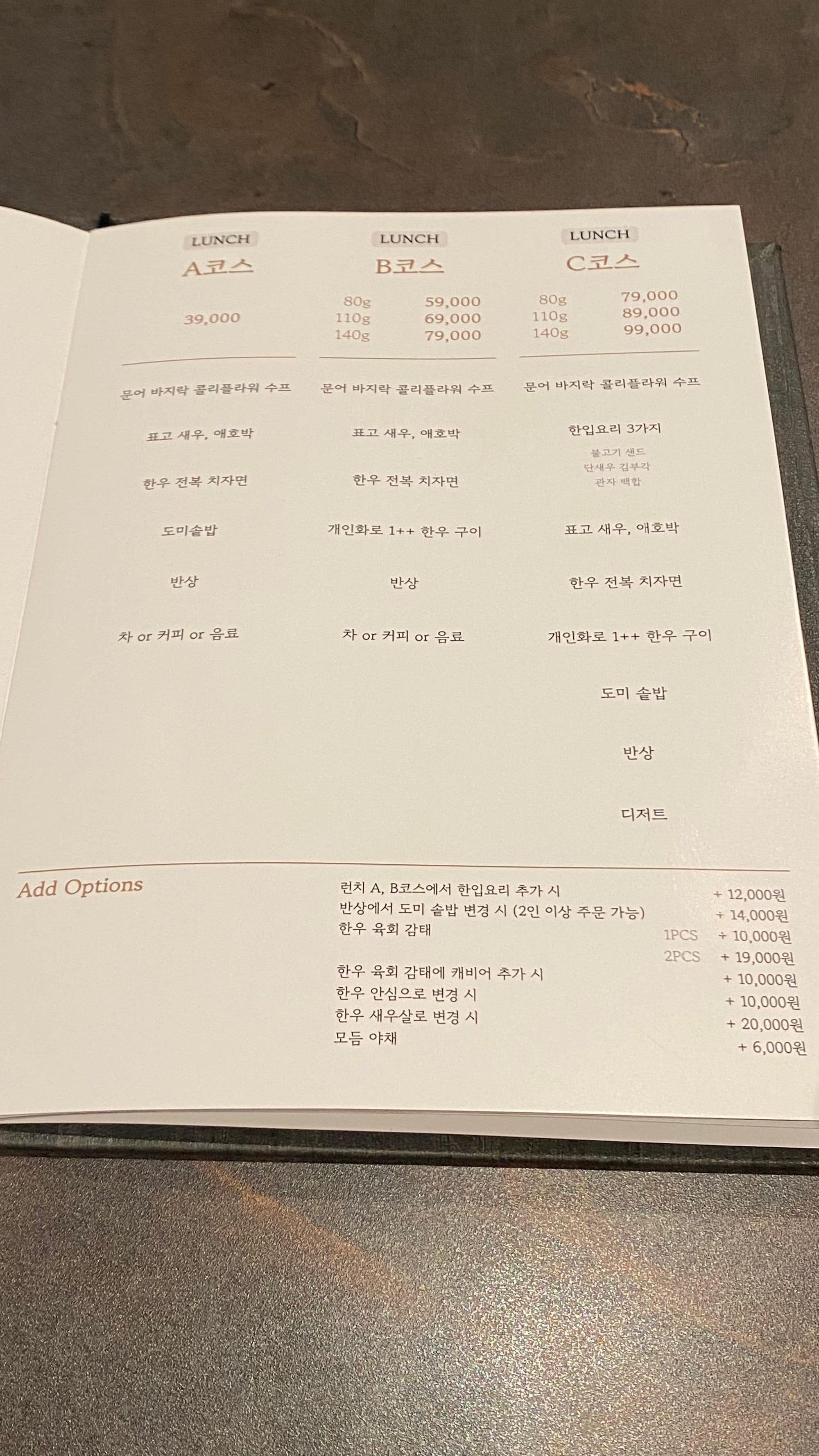 런치c코스로 주문했습니다.