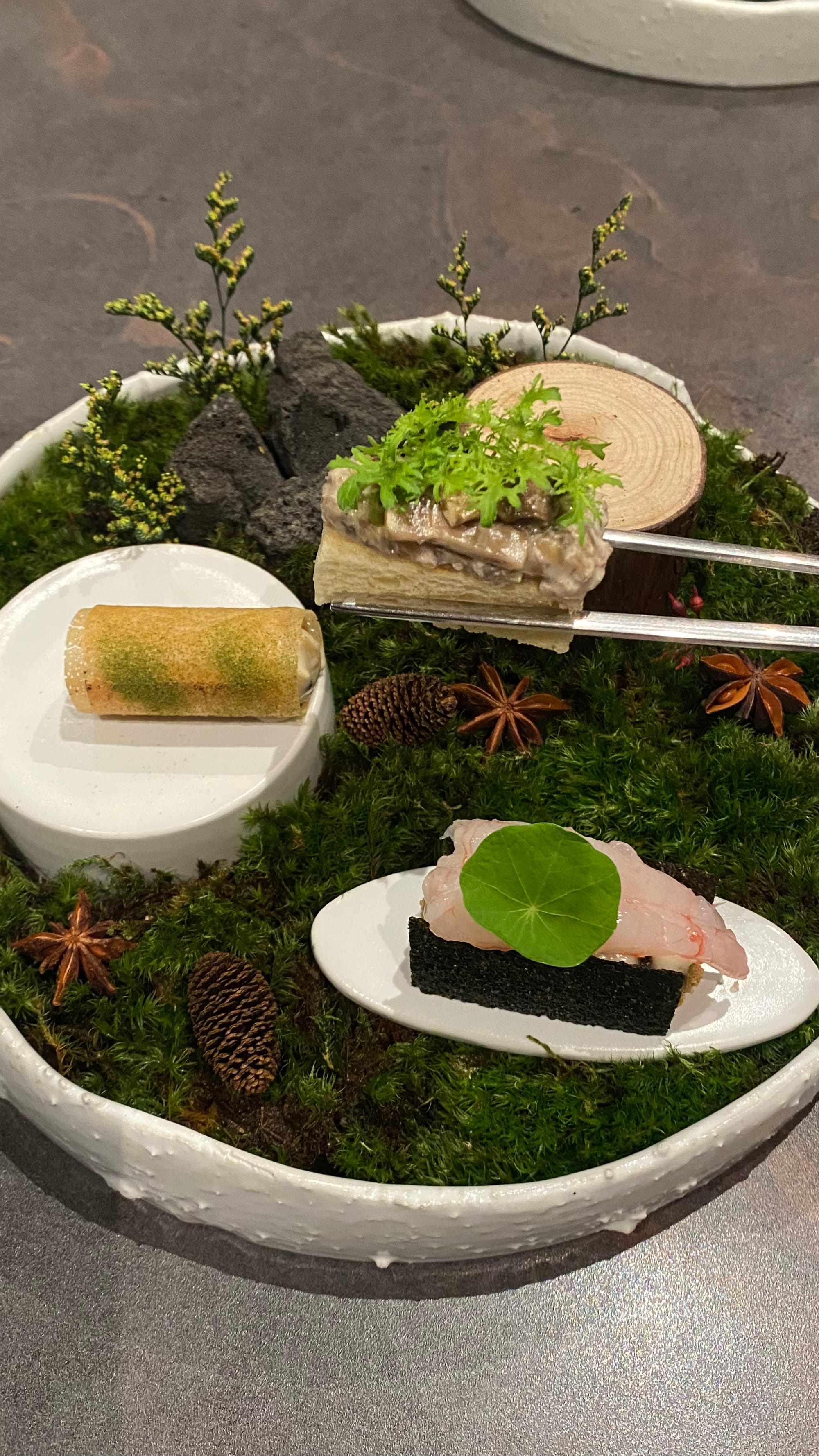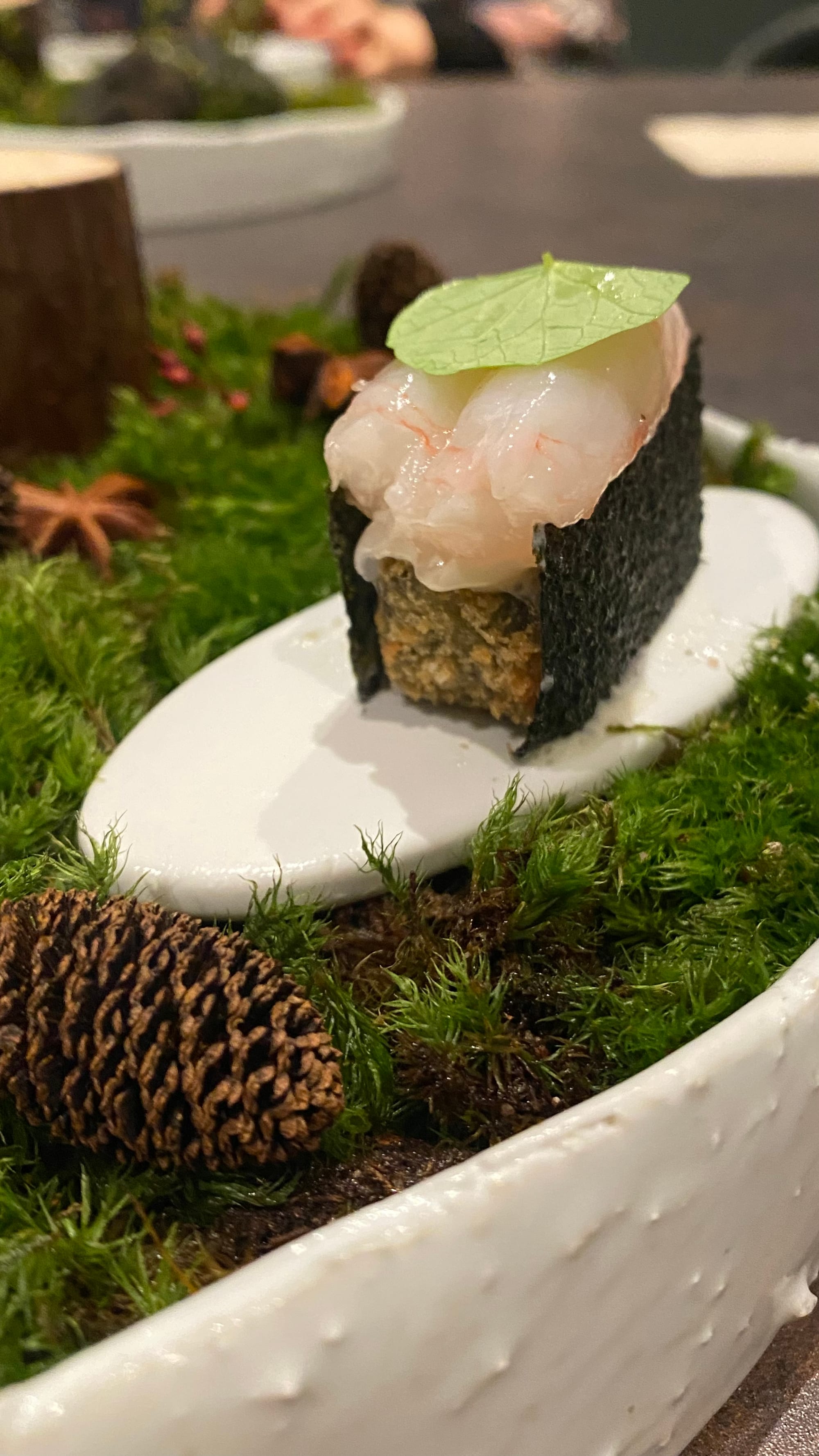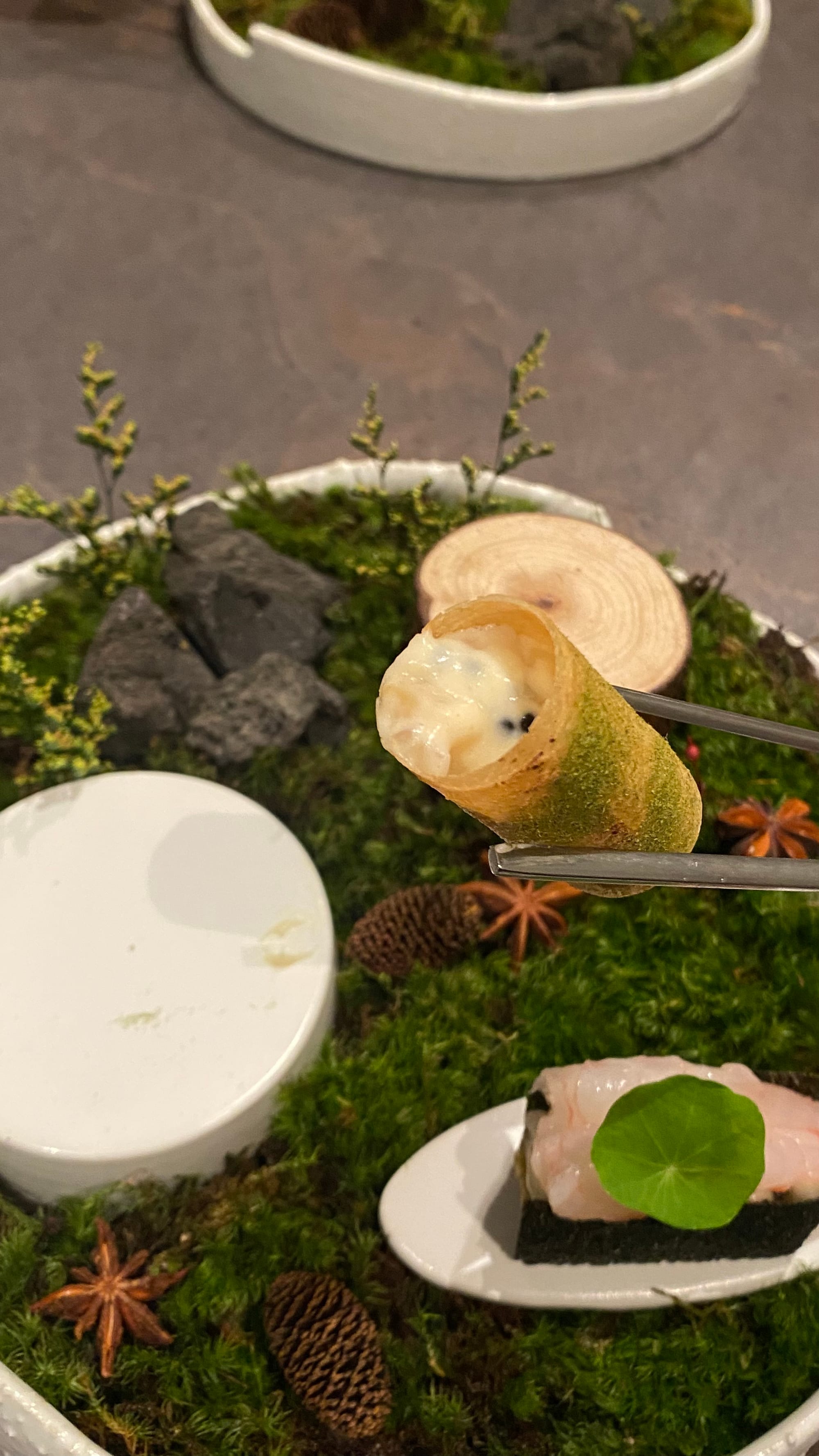 - 롤 안에 관자랑 백합으로 채워져 있는 요리.