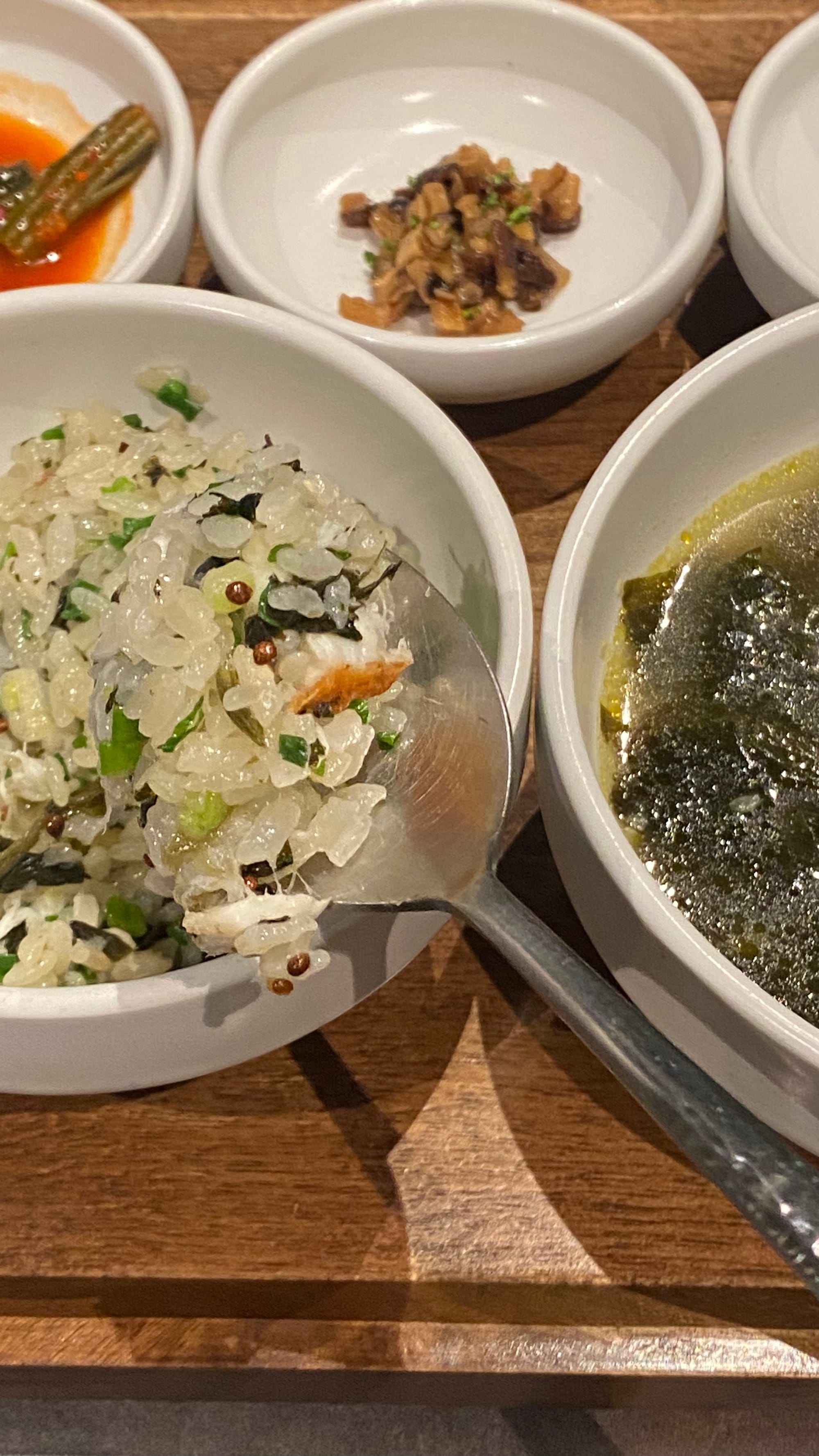 반찬은 갓김치, 표고와사비, 씨앗젓갈