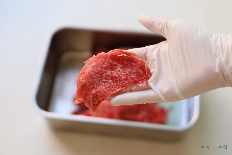 이왕이면 등급이 높아서 마블링이 들어간 부위면 더 좋다.