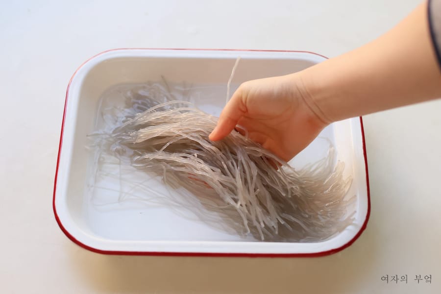당면은 찬물에 담가 30분 이상 불린다.