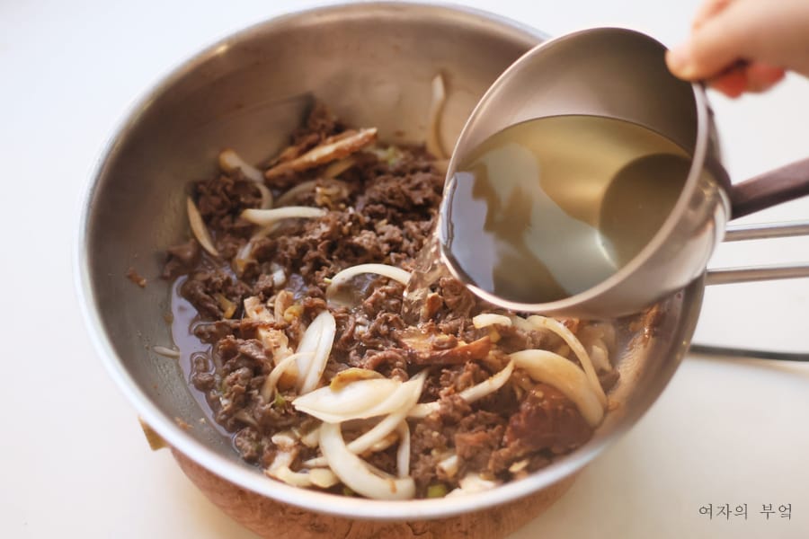 소불고기 만들기 할 때 육수를 부어서 국물을 자작하게 한 후