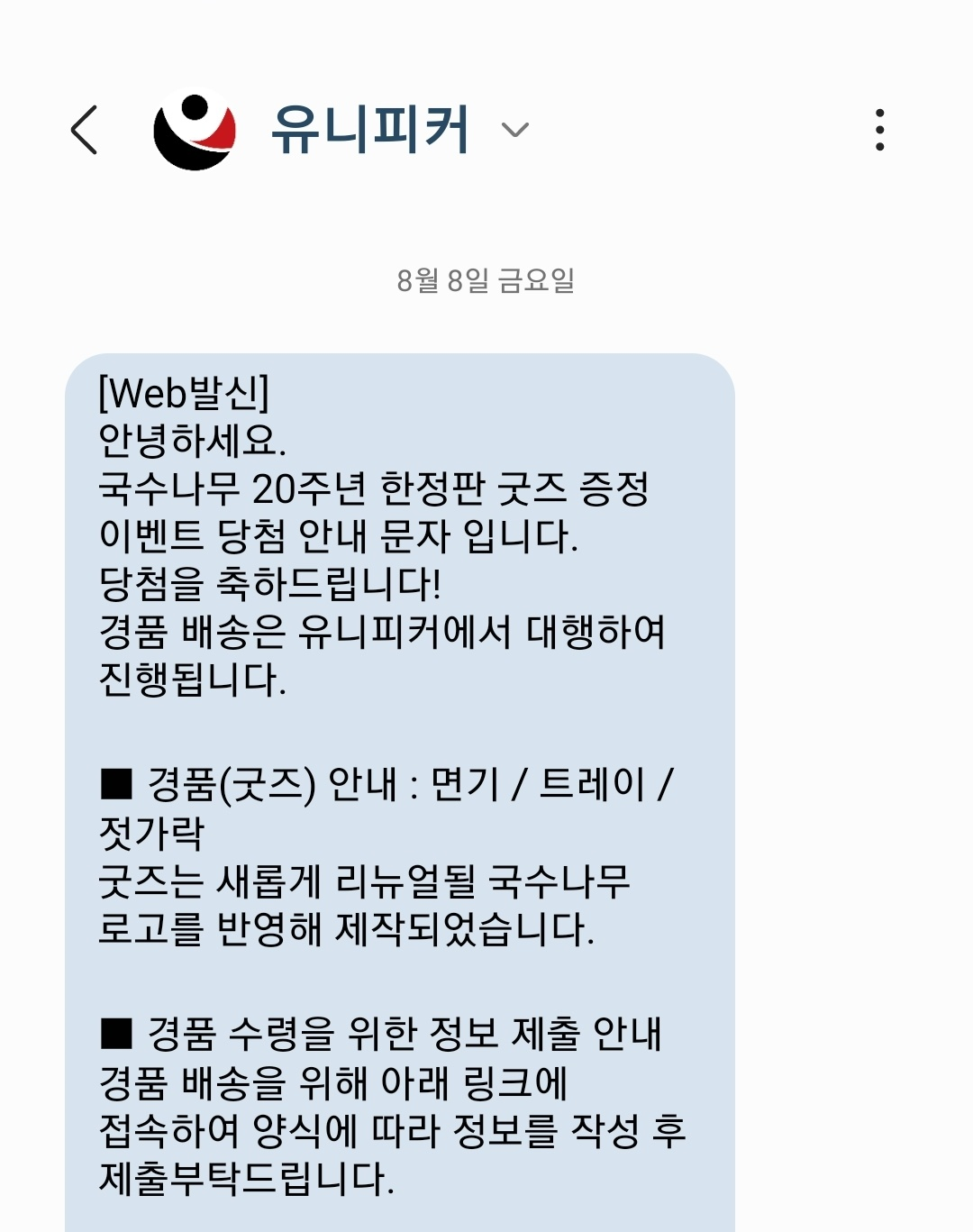 국수나무 브랜드 20주년 기념 이벤트 굿즈 당첨 리뷰