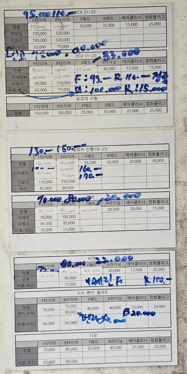 타이어 교체시 가격변동이 생긴것 같아서 사진찍어서