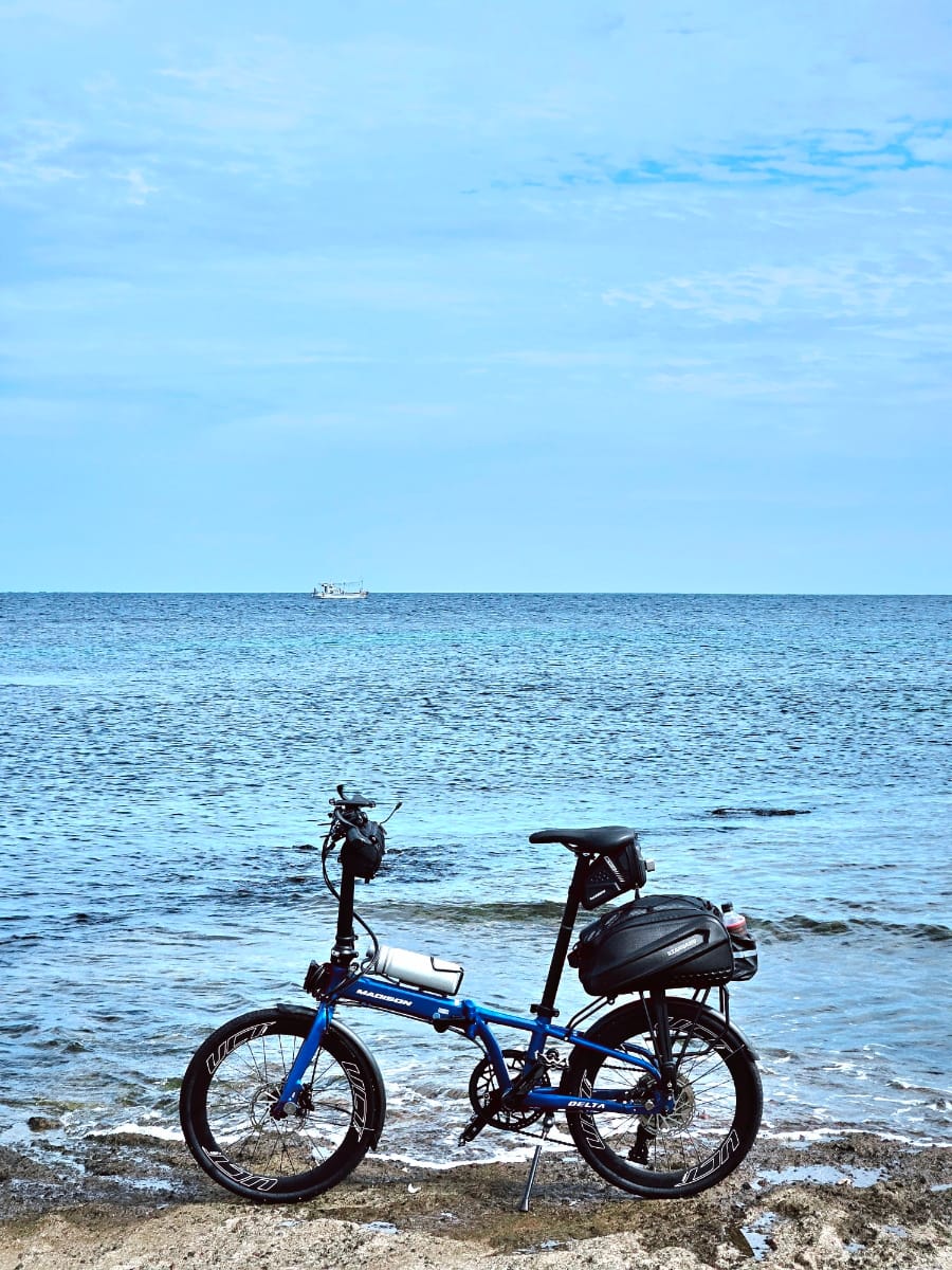 그렇게 등대쪽을 갔는데, 바닷물이 들어올랑 말랑한 곳까지 자전거를 타고 갈 수 있어 정말 좋았다. 뭐가 자전거 모델샷^^을 찍어볼 수도 있고, 파도가 찰랑찰랑하는 곳에서 자전거와 함께라니 참 좋다.