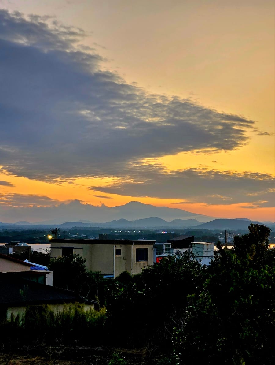 저녁 먹으러 가는 길에 보여준 한라산 실루엣, 한우고사리해장국 + 또 다른 한라산^^