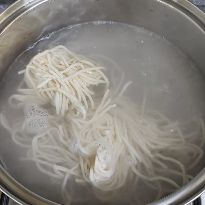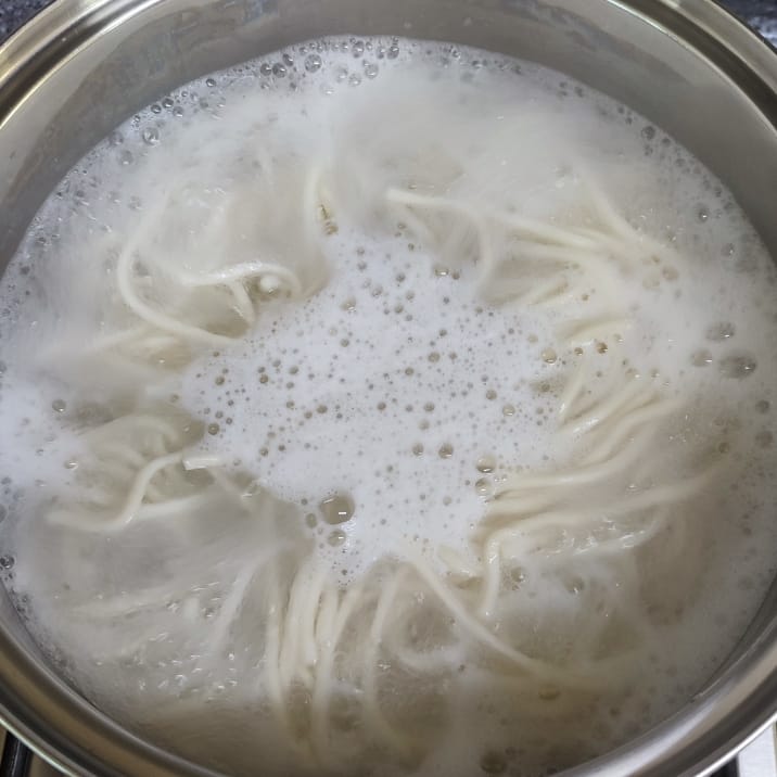 다른 냄비에 물을 팔팔 끓여 칼국수면을 삶아 주세요.