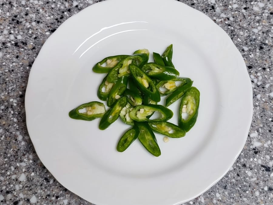 청양고추는 어슷하게 썰어 씨를 살살 털어내 주세요.