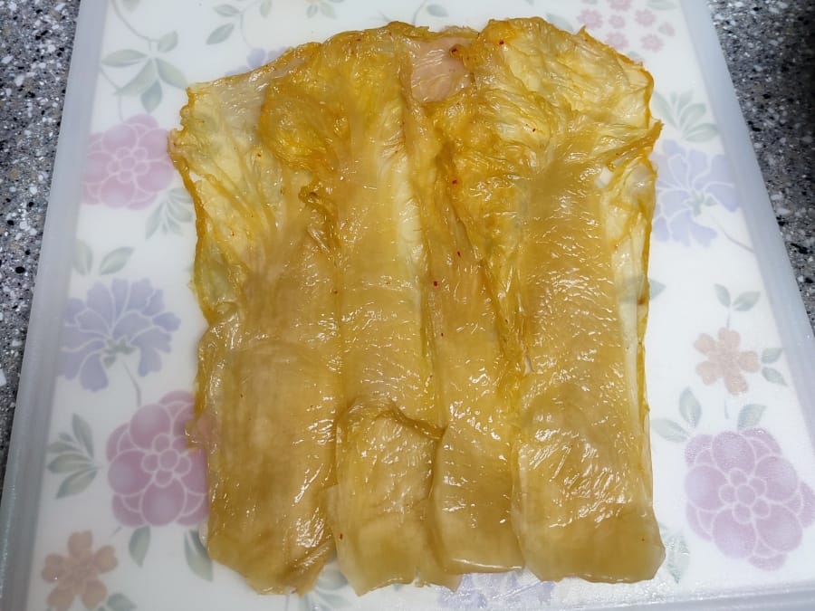 묵은지의 머리 부분을 앞쪽으로 향하게 해서