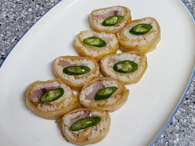묵은지 숭어회 말이, 밥도 되고 안주도 되는 한입요리