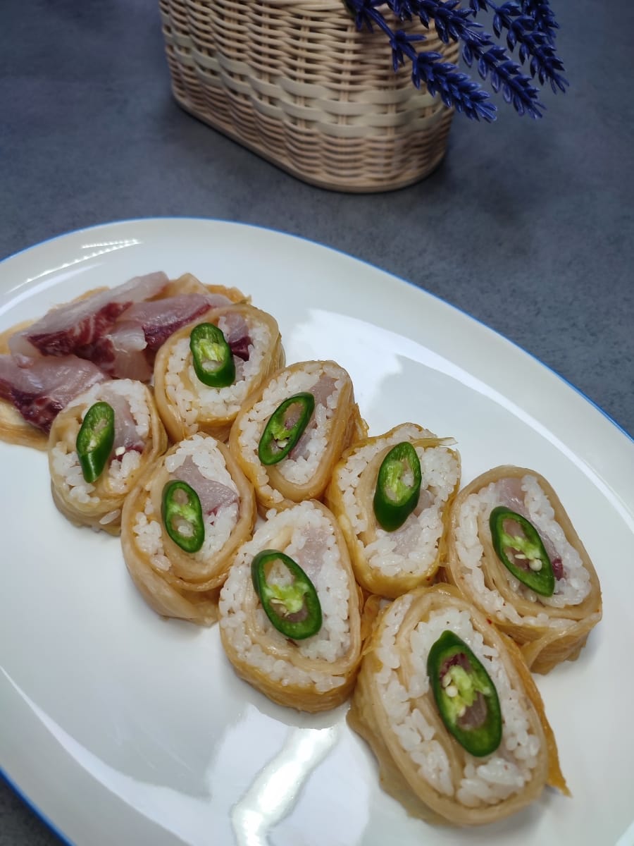 하얀 접시에 가지런히 올리니 초밥처럼 예쁘고,
