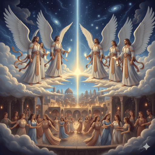 셈야제는 다른 천사들에게 지상의 여성들 가운데 아내를 선택해서 아이를 낳자고 부추깁니다. 결국 타락한 200명의 천사들이 이 제안을 받아들이죠. 20명의 천사장들이 각각 10명의 천사들을 이끌고 지상으로 내려가 실행하게 됩니다.