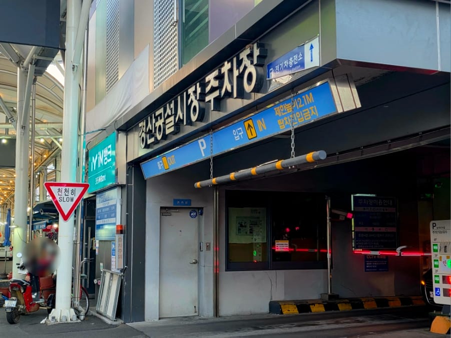 경산공설시장 주차장 이용 (한 시간 무료) | |