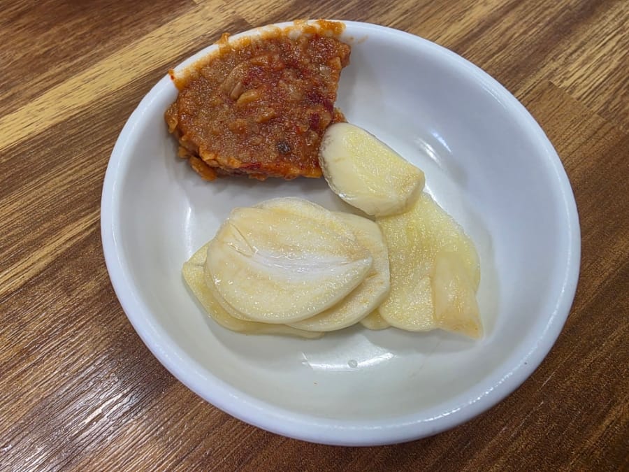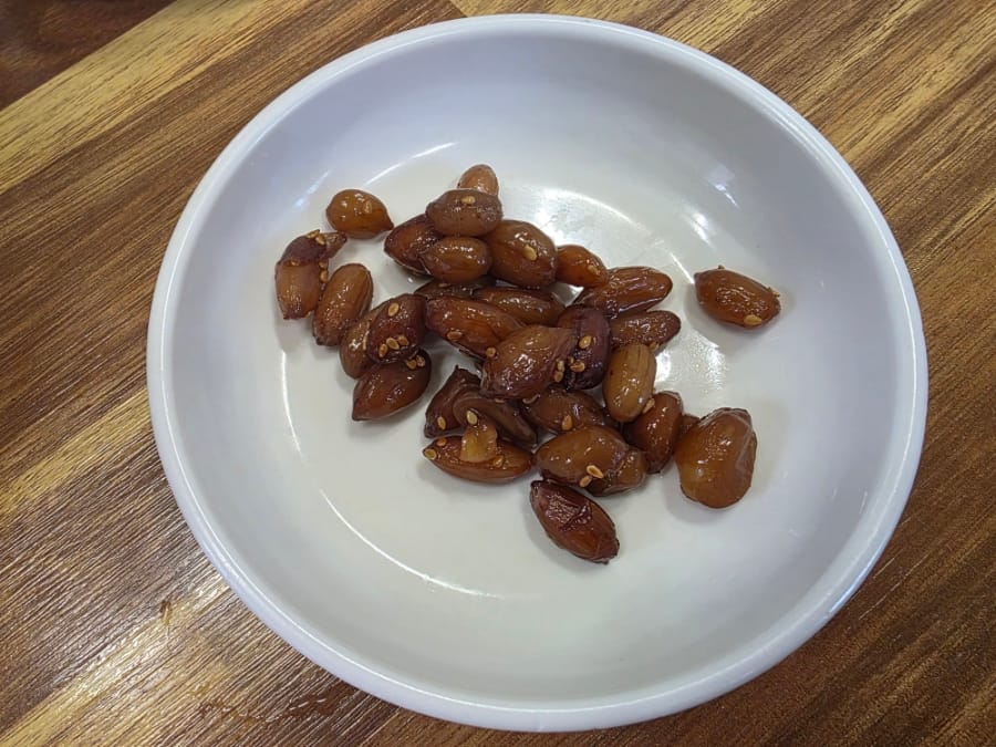 기본 찬은 김치, 땅콩조림, 꼬들빼기,