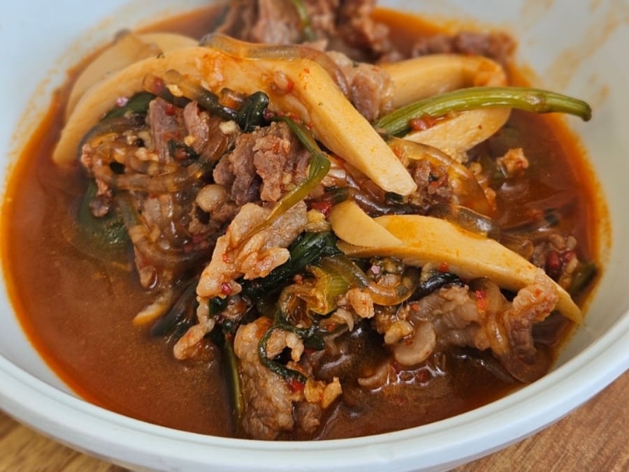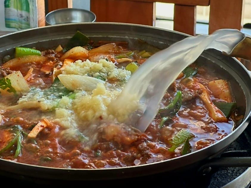 이날 저희는 소고기찌개 3인분을 주문했어요.