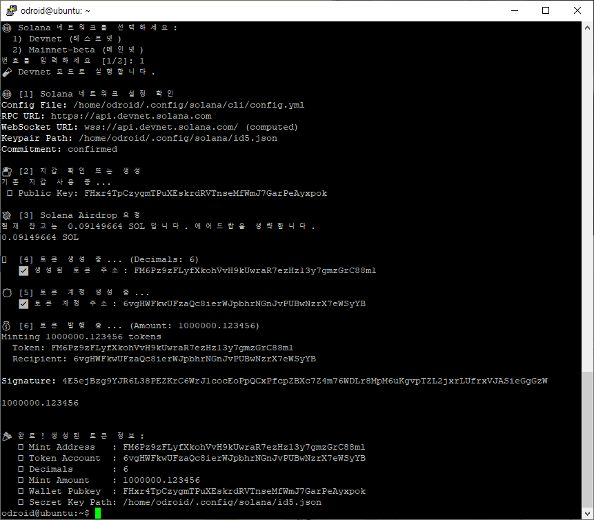 #!/bin/bash # 설정값 DECIMALS=6 MINT_AMOUNT=1000000.123456 KEYPAIR_PATH="$HOME/.config/solana/wow.json" . . . 이하 생략