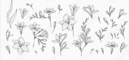 흰색 프리지아: 청순하고 깨끗한 느낌. 신부 부케에 자주 사용돼요.