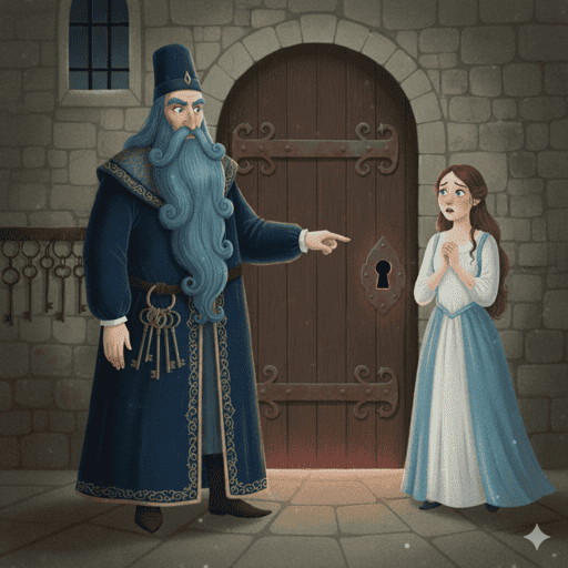결혼한 후 막내딸은 '푸른 수염'의 거주지인 거대한 성에서 함께 살게 되었습니다. 그런데 그가 막내딸에게 열쇠 꾸러미를 주며 '모든 방은 다 들어가도 좋지만, 지하실에 있는 구석진 방은 열지 말라'라고 당부합니다. 막내딸은 좀 이상했지만 순순히 그 말을 따랐죠.
