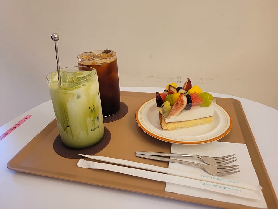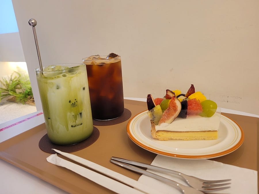 주문 리스트: 아아 + 말차라떼 + 후르츠요거트크림타르트