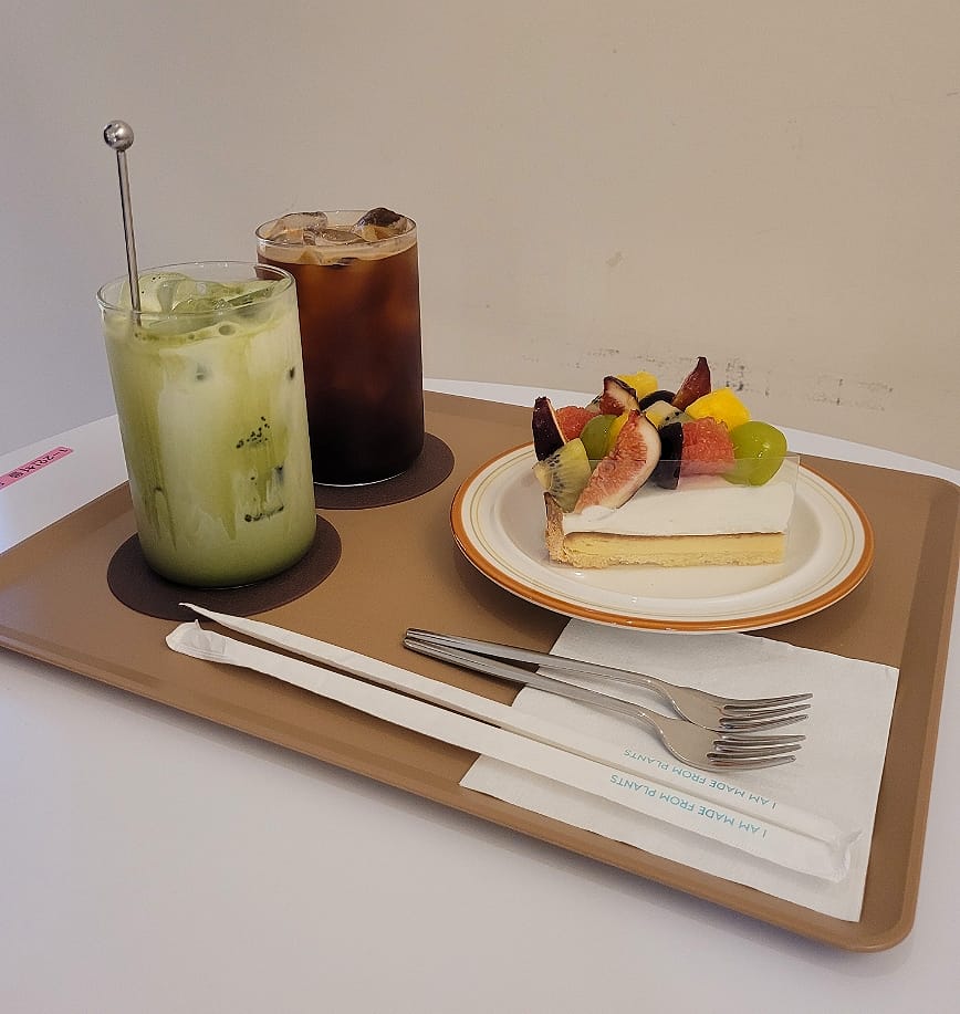 주문 리스트: 아아 + 말차라떼 + 후르츠요거트크림타르트