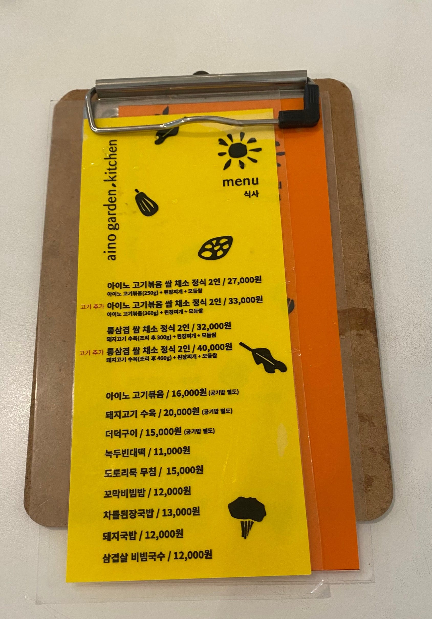 서촌 한식 맛집 아이노가든키친의 메뉴는