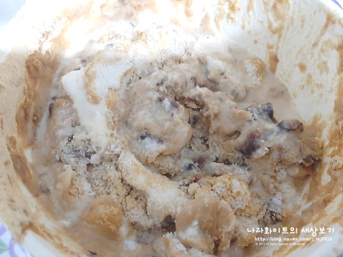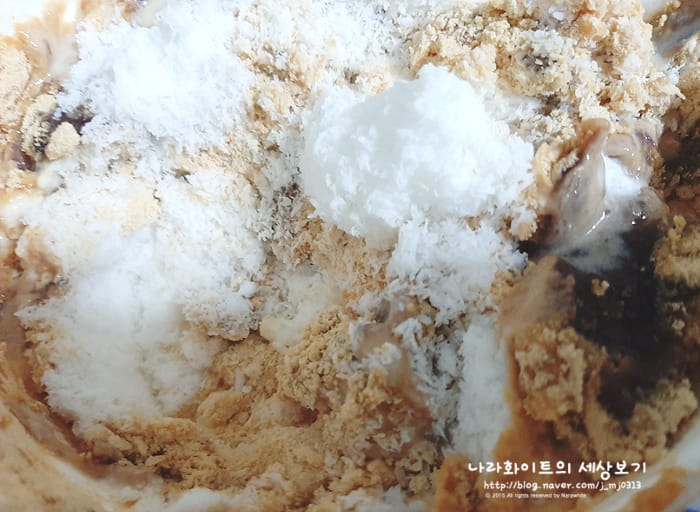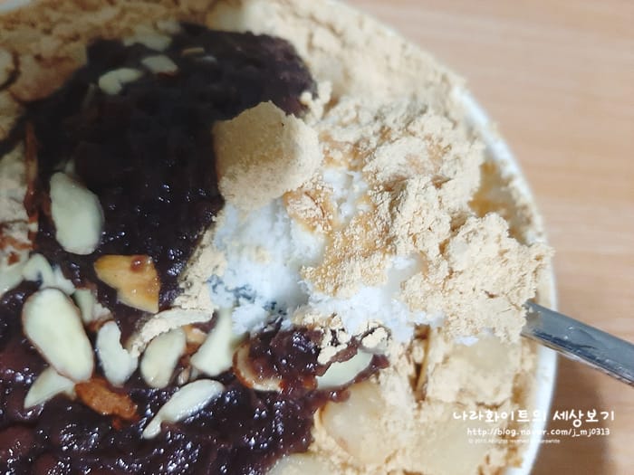 엄청 살살 섞었는데 인절미 가루가 엄청 떨어진다ㅋㅋㅋ
